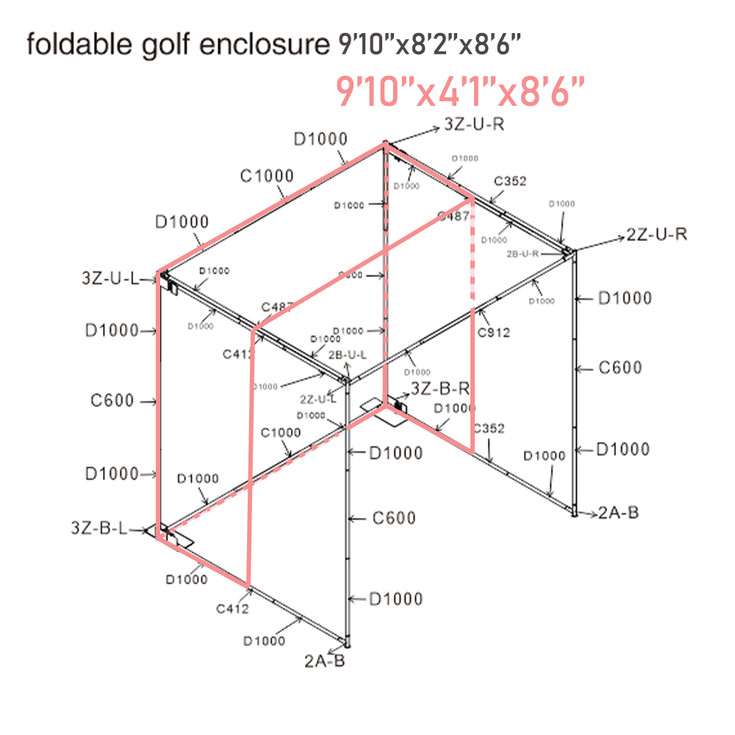 Foldable Golf Enclosure Kit Space-Saving Indoor Simulator [9'10''x 4'1''x 8'6'']