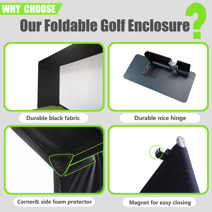 - Foldable Golf Enclosure: Elevate your golf practice at home with our premium 9’10”x8’6”x4’1” golf simulator enclosure kit; this durable golf simulator projector provides ample room for full-swing practice and a realistic indoor golf experience